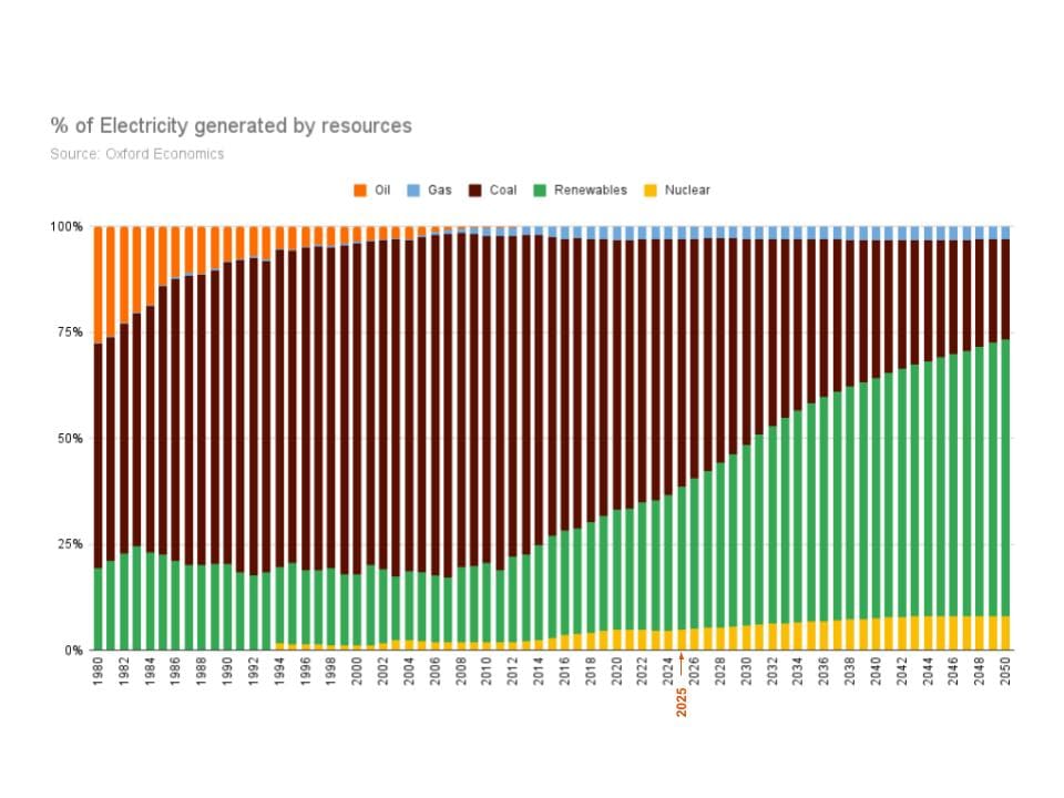 Pero la jugada china en materia climática quedó muy clara a partir de 2020, cuando China -el mayor emisor mundial de CO₂ en términos absolutos siendo también el mayor país por demanda de electricidad- inició un importante cambio en su combinación energética, con el objetivo de alcanzar un pico de emisiones de carbono en 2030 y lograr la neutralidad en 2060.